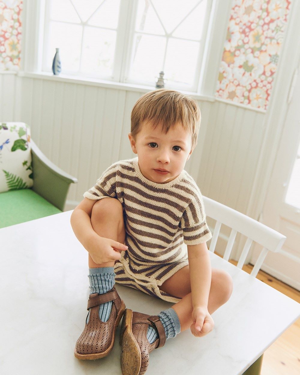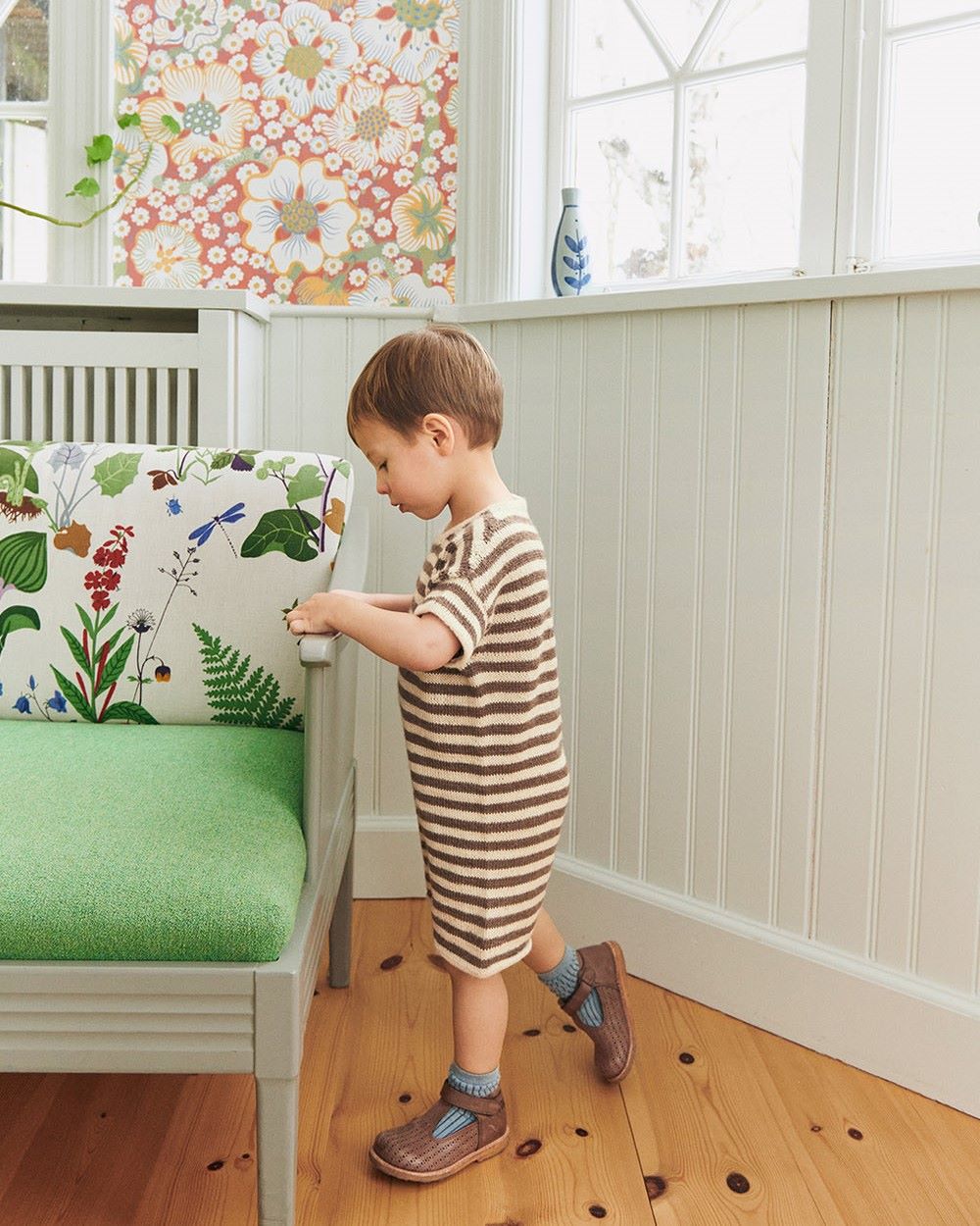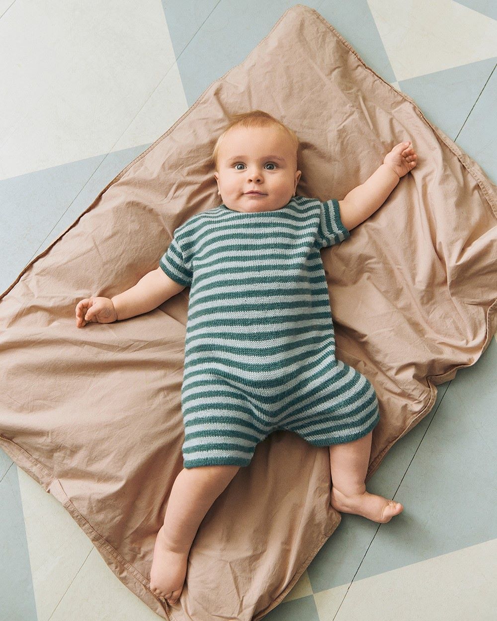 Theodore playsuit baby opskrift fra Sandnes Garn.